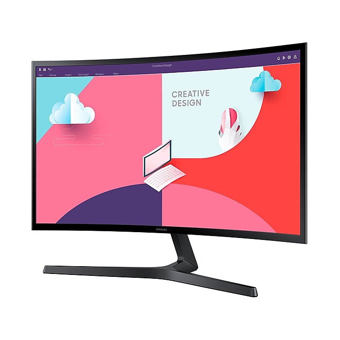 This Samsung S36C monitor with 1800R curvature provides an enhanced viewing experience and streamlined connectivity with HDMI, VGA, and headphone ports. Relieve eye strain and fatigue with the Eye Saver mode and flicker-free technology. Improved graphics with support from 75Hz refresh rate and AMD FreeSync.